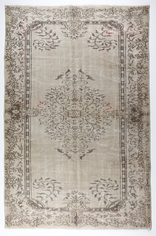 This vintage carpet is a meticulously hand-woven piece from Western Anatolia, featuring a distinctive whitewashed finish and low-sheared pile that allows it to seamlessly complement a wide variety of interior styles, from contemporary modern to rustic country living. Its design emphasizes highlighted motifs set against a neutral background, creating a subtle yet impactful focal point that enhances the natural beauty of any space. Combining traditional craftsmanship with understated elegance, this carpet offers both aesthetic versatility and enduring quality, making it an exceptional addition to sophisticated home decor.