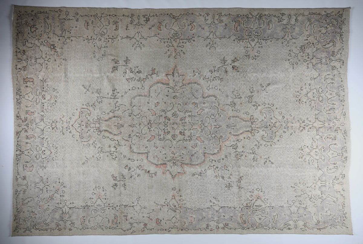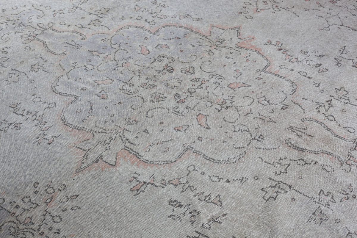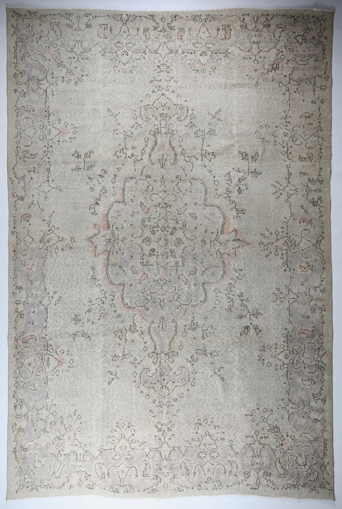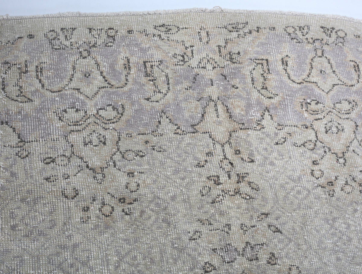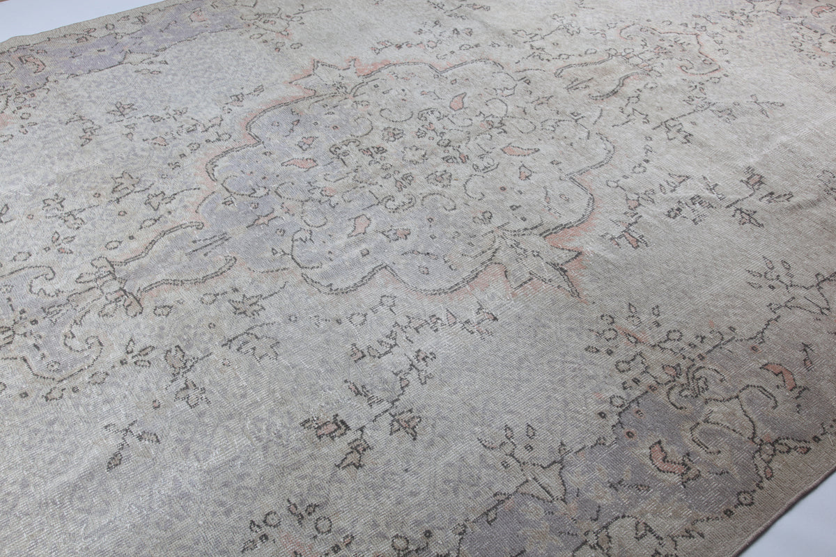This vintage carpet is a meticulously hand-woven piece from Western Anatolia, featuring a distinctive whitewashed finish and low-sheared pile that allows it to seamlessly complement a wide variety of interior styles, from contemporary modern to rustic country living. Its design emphasizes highlighted motifs set against a neutral background, creating a subtle yet impactful focal point that enhances the natural beauty of any space. Combining traditional craftsmanship with understated elegance, this carpet offers both aesthetic versatility and enduring quality, making it an exceptional addition to sophisticated home decor.