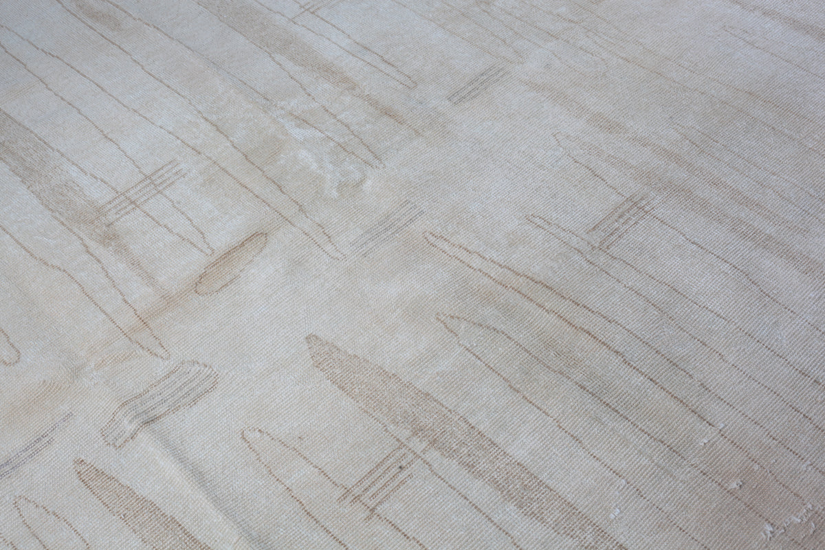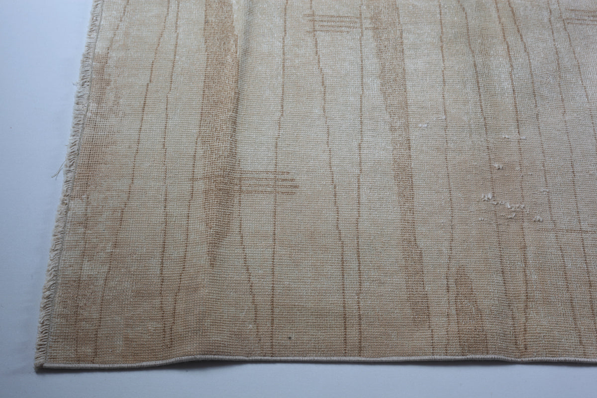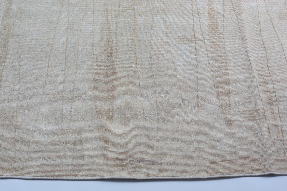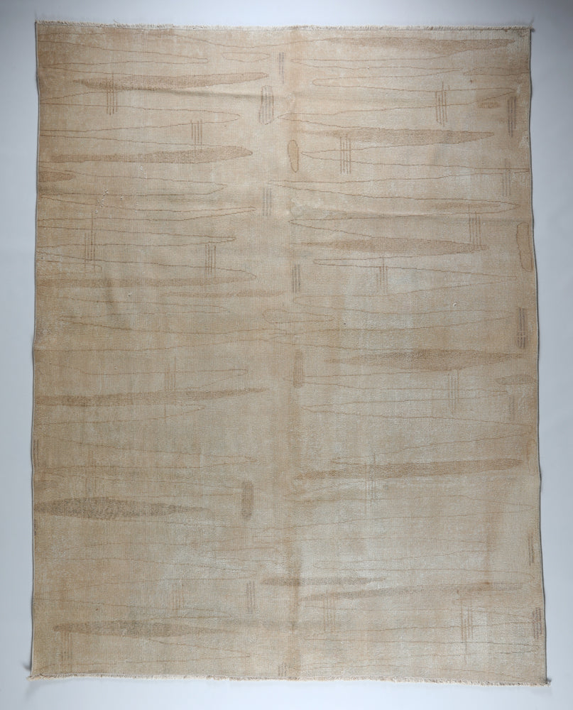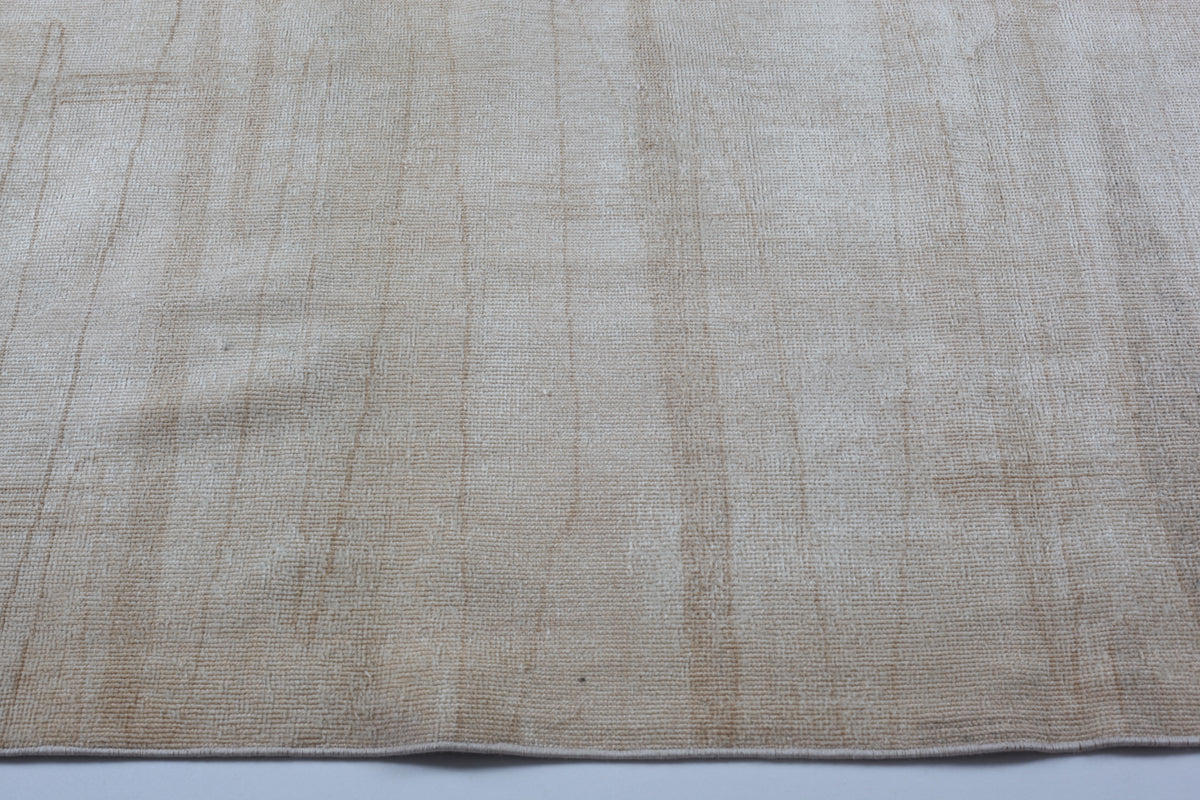 This vintage carpet is a meticulously hand-woven piece from Western Anatolia, featuring a distinctive whitewashed finish and low-sheared pile that allows it to seamlessly complement a wide variety of interior styles, from contemporary modern to rustic country living. Combining traditional craftsmanship with understated elegance, this carpet offers both aesthetic versatility and enduring quality, making it an exceptional addition to sophisticated home decor.