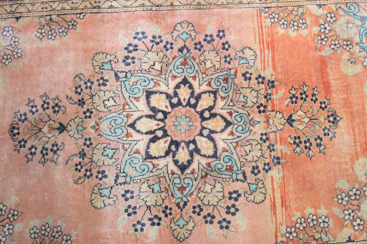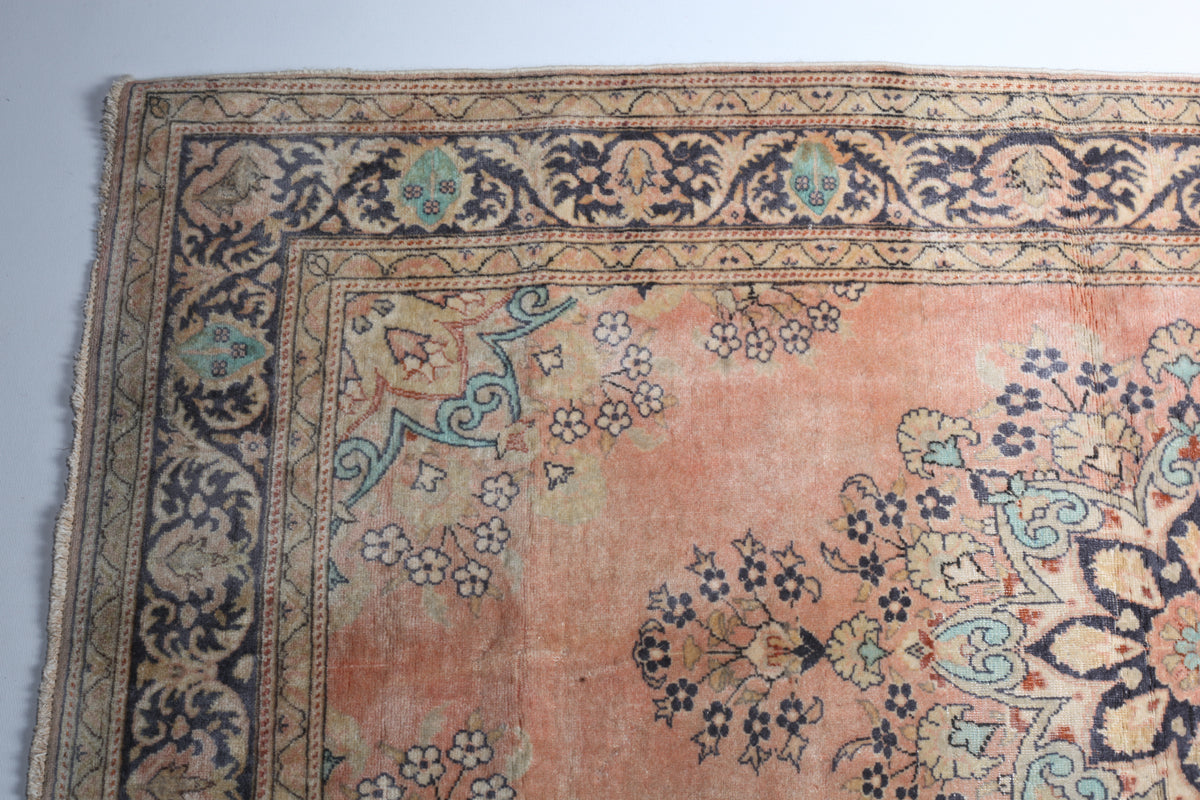 Discover the deep-rooted heritage of Kayseri carpet weaving, originating in Türkiye's city of Kayseri. For centuries, this city has been celebrated for its expert rug making, leading to intricate and lavish designs. Here is another garden-inspired rug pattern representing tranquility and the natural world. Over the years, various civilizations, including the Hittites, Phrygians, Romans, Ottomans, and Armenians, have played a significant role in shaping the distinct Kayseri rug style. This carpet boasts lovely, muted hues and an open center that accentuates the medallion. It is ideal for a living room with light flooring, such as tile or wood.