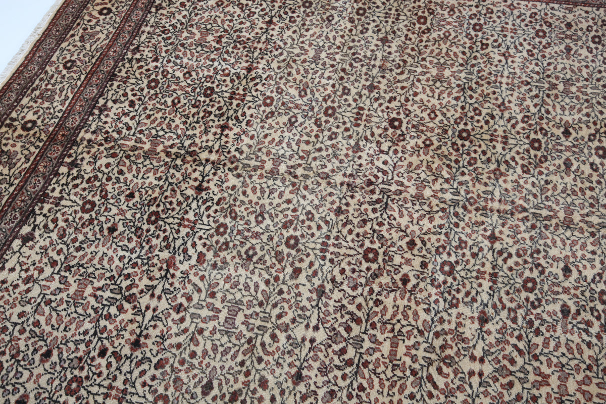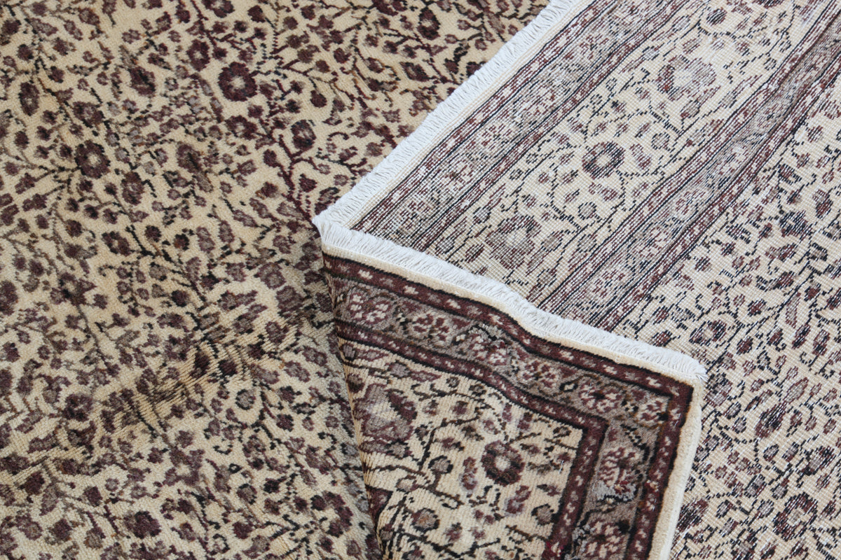 All of the rugs you can find on our site are hand-knotted in the traditional form, which includes wool on wool or wool on an organic pre-washed cotton base. These styles of carpet weaving make the rugs incredibly durable and the natural vegetable dyes resist color bleeding. The wool in our rugs is not bleached and has been washed multiple times during their production. Some of the much older antique rugs may have some repairs on the edges and fringes may be restored.
