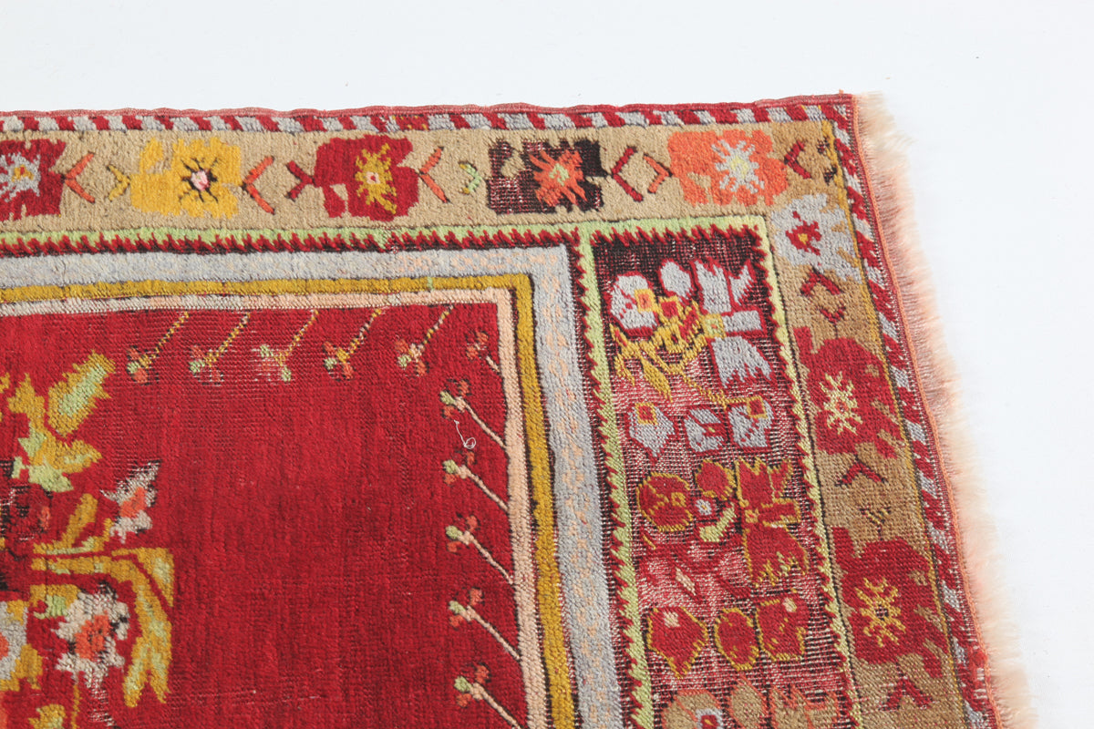 The Vintage Kirshehir Prayer Rug serves as both a physical and symbolic delineation of sacred space, allowing worshippers to establish a ritually pure area for prayer. Its mihrāb, a stylized representation of the prayer niche found in mosques, visually guides towards the Kaaba in Mecca, the direction of prayer for Muslims. This prayer rug offers valuable insights into broader cultural and intellectual movements within the Islamic world, with its design showcasing nature-oriented motives unique to Kirshehir prayer rugs. Although a seemingly simple object, the prayer rug represents the intersection between the material and spiritual realms, the individual and communal, and the historical trends and artistic expression of the Islamic world.