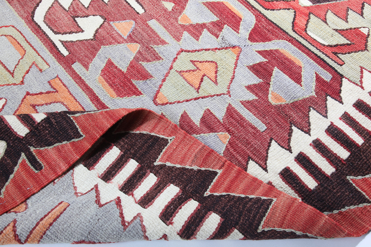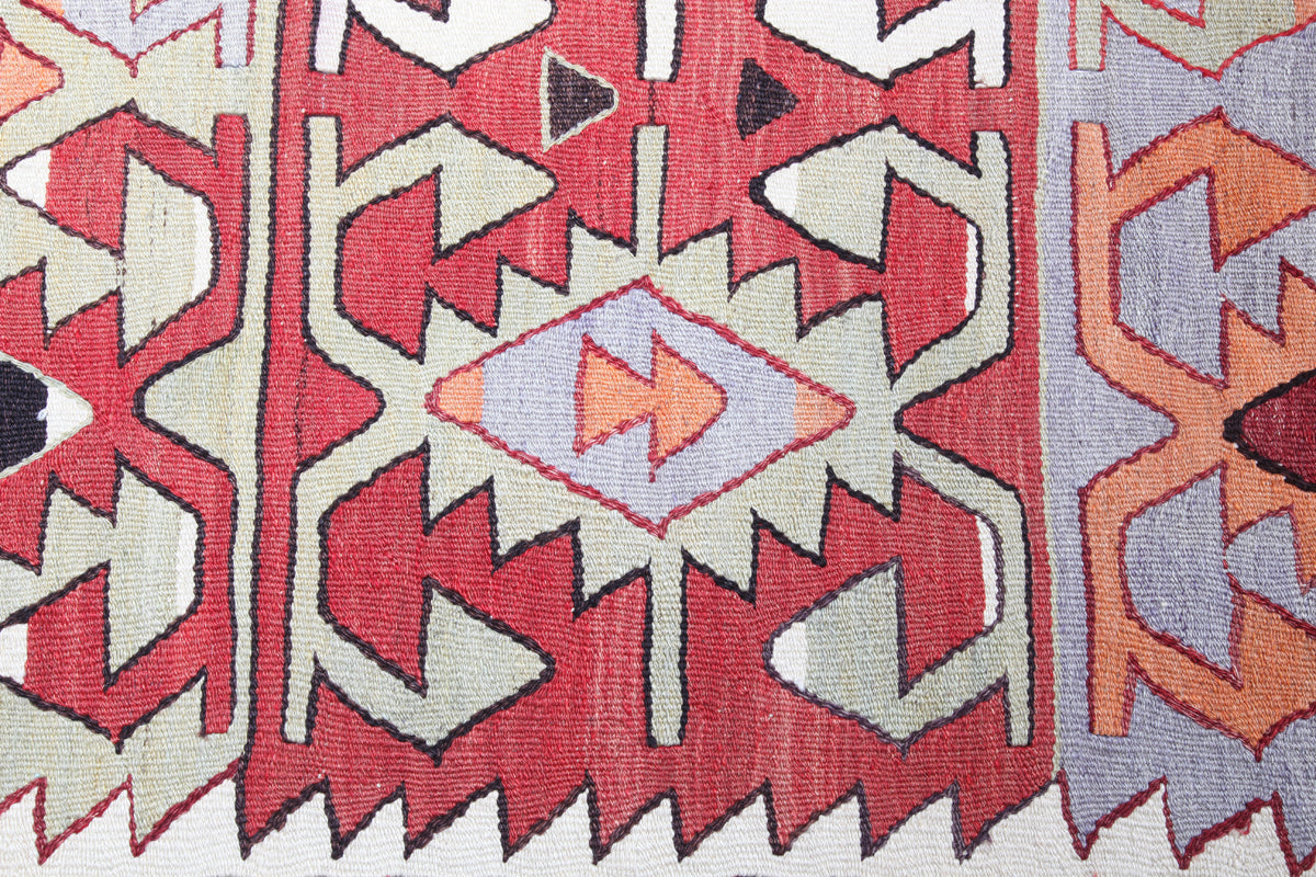 This Konya kilim was woven in Karaman region in the original style to bestow power on the family and protect them. It has been restored in some minor places, like fringes, by a Turkish kilim restoration master in Istanbul.